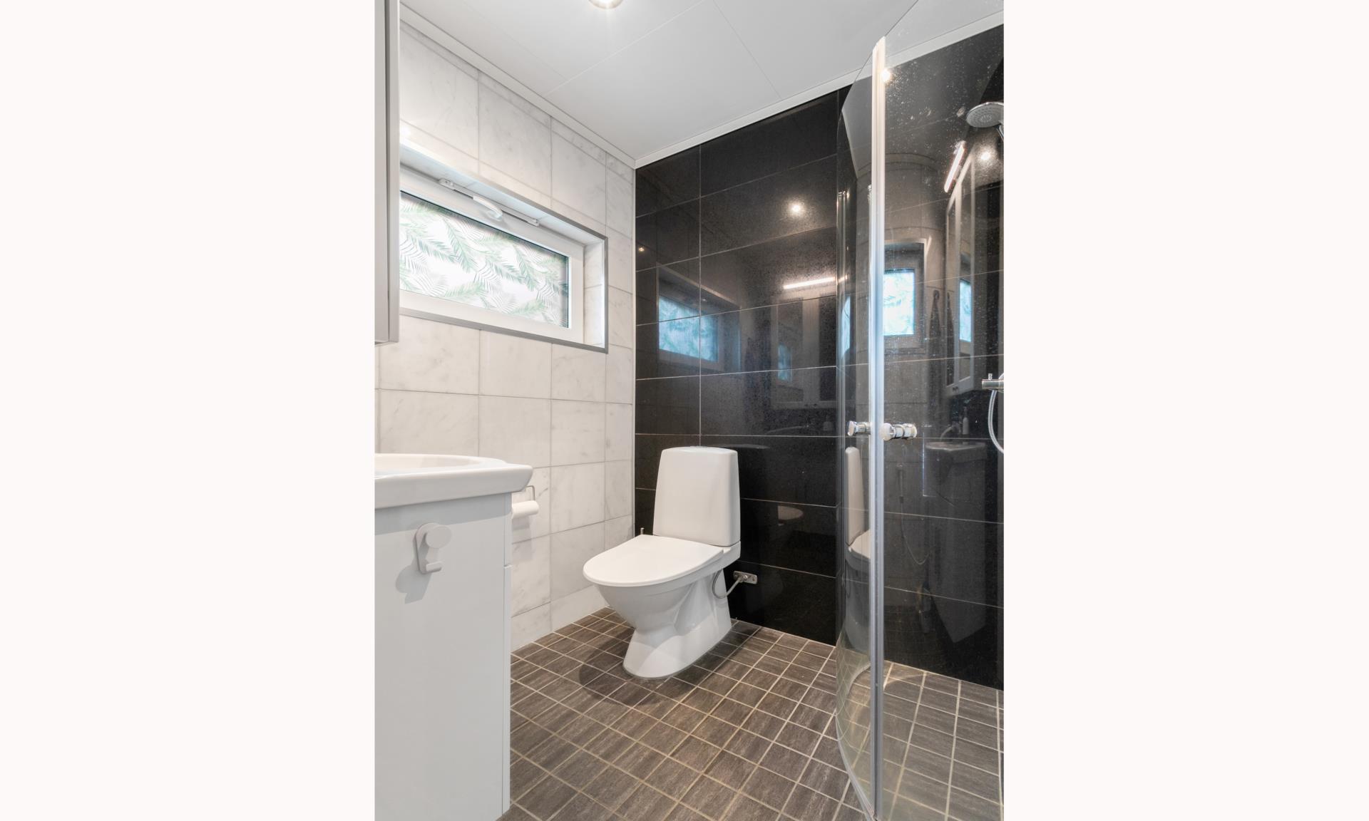 - Villan har 4 badrum och en extra dusch i bastuavdelningen. Genomgående massiva ekdörrar och ektrappa.