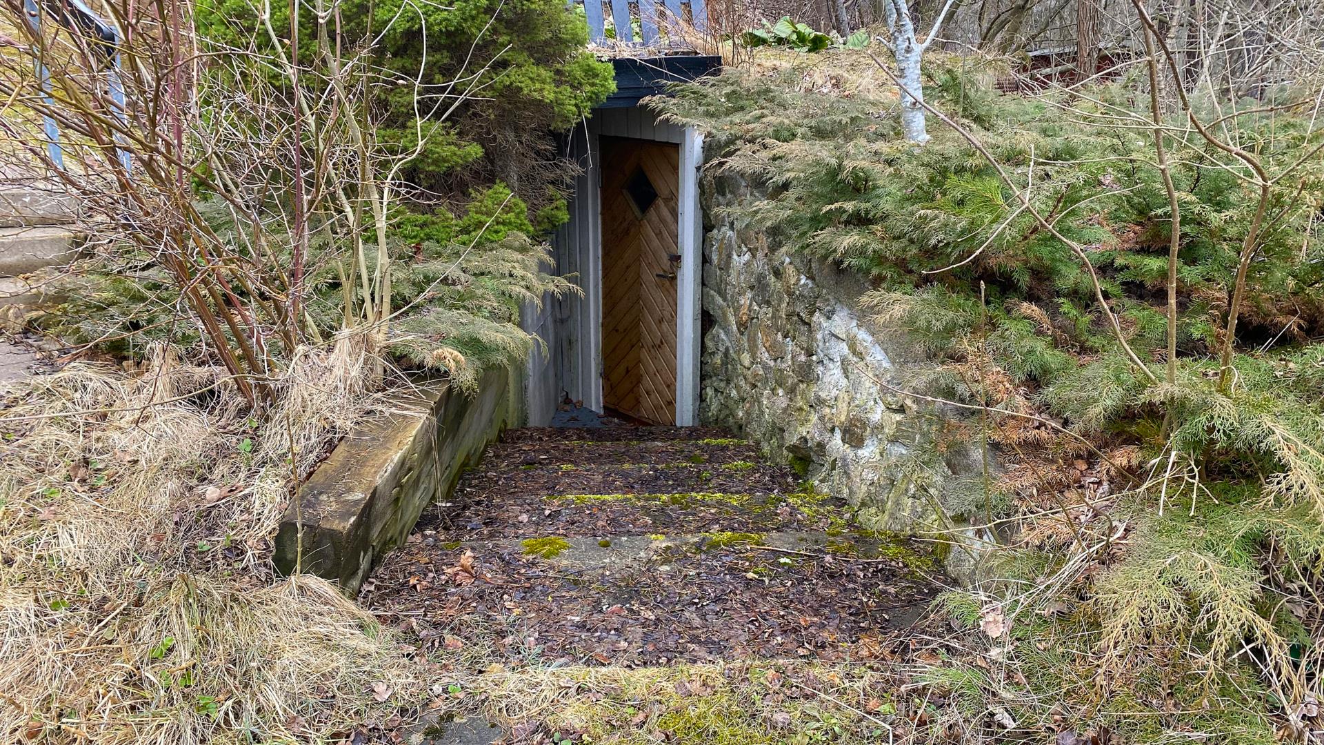 Fantastiskt högt läge som skapar en väldigt privat atmosfär. Skaftvägen är asfalterad och likaså parkeringsytan framför garaget. Gräsytor runt om villan och annan växtlighet som ramar in fastigheten på ett fint sätt. I slänten till höger framför villan finns en jordkällare på några kvadrat. Perfekt som extra förvaring till kalla drycker eller annat passande.