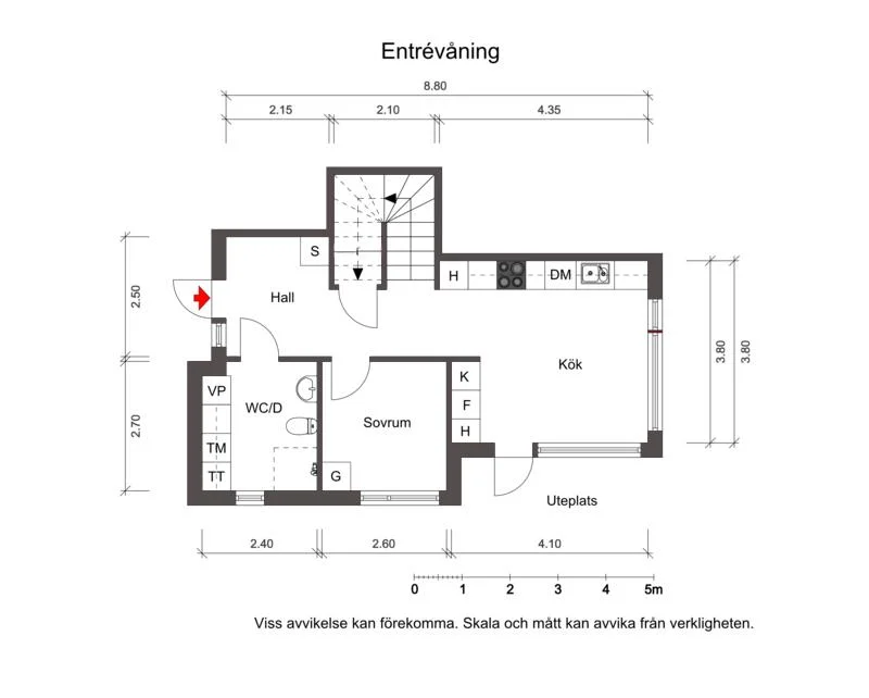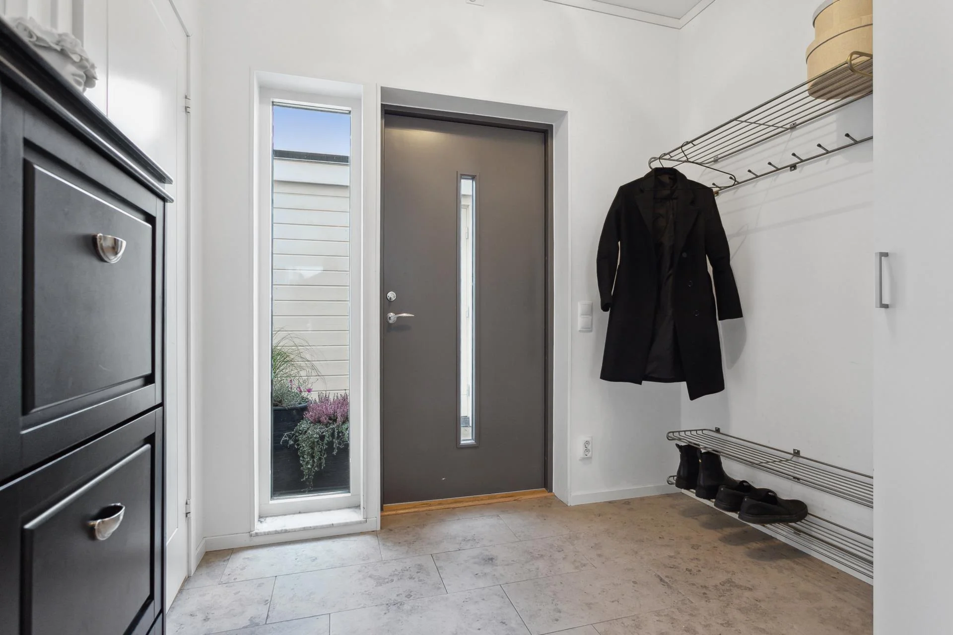 Vidare finns ett generöst sovrum, en stilren och helkaklad dusch/WC med en bra tvättavdelning som underlättar vardagen och den stora hallen har plats för garderober. Dessutom finns ett bra förrådsutrymme under trappan som underlättar ytterligare förvaring.