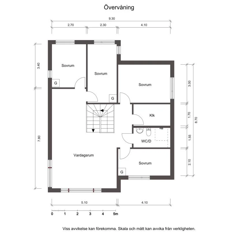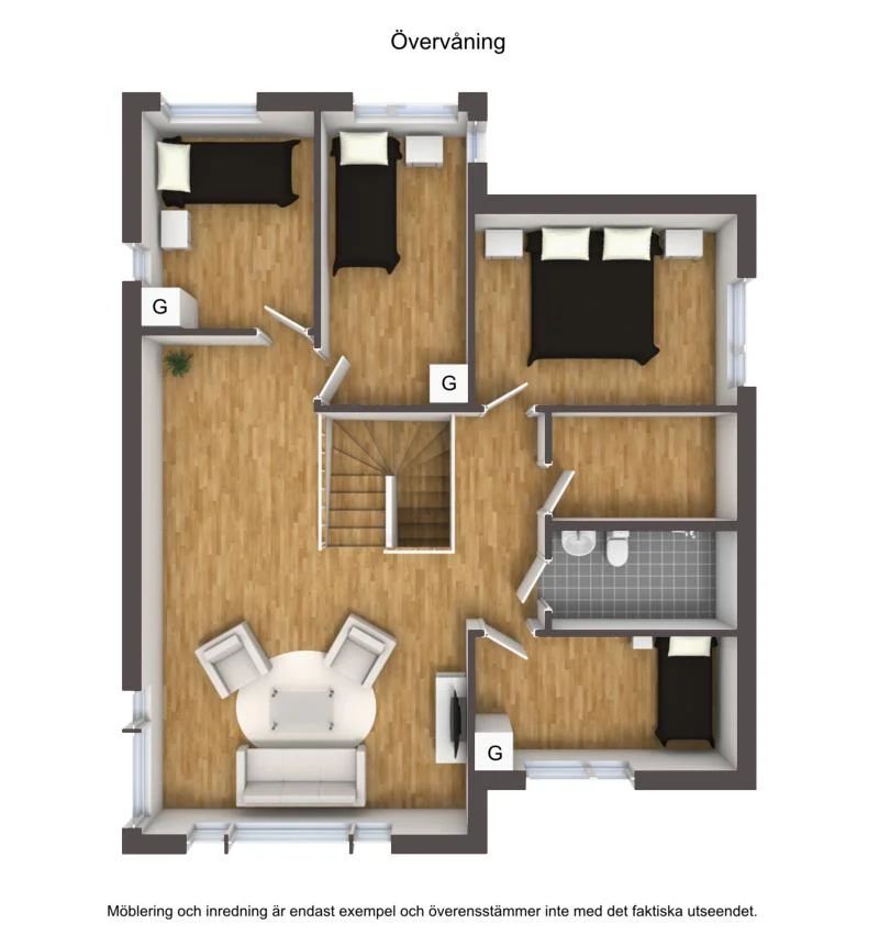 Därtill erbjuds 4 sovrum med fint ljusinsläpp, varav tre av dessa har goda förvaringslösningar via garderober. En stor klädkammare finns att tillgå som underlättar förvaring samt en stilren och helkaklad dusch/WC med väl valda material.
